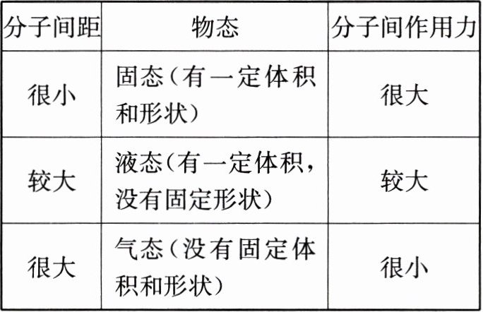 | 很小 | 固态(有一定体积和形状) | 很大 |