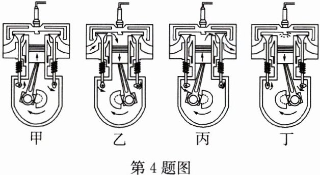 )A.汽油机一个工作循环四个冲程的正确顺序是:丙、甲、丁、乙