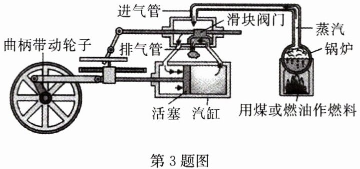 3. 如图是蒸汽机工作的原理示意图,关于蒸汽机的工作过程中所涉及的物理知识,下列说法正确的是(