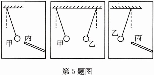 5. 甲和乙是两个轻质泡沫小球,丙是带正电荷的带电体,甲、乙和丙三者之间相互作用时的场景如图所示,由此判断(