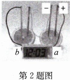 2. 某学校的科技节上展出了一组如图所示的作品,分别用柠檬和西红柿连着液晶显示器,来自低年级的参观者们十分好奇。关于这个作品,下列说法正确的是(