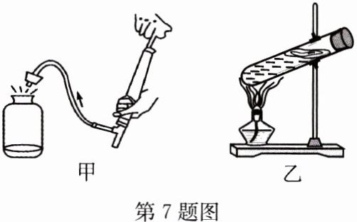 7.如图甲所示,在烧瓶内盛少量水,给瓶内打气,当塞子跳出时,可以看到瓶内出现“白气”。如图乙所示,给试管中的水加热一段时间以后,试管口塞子喷出,同时瓶口产生大量“白气”。下列分析正确的是(