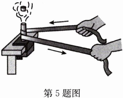 5.把一薄壁金属管固定在支架上,金属管中装一些酒精,然后用软木塞塞紧。用橡皮条缠绕在金属管上,迅速来回拉动橡皮条,过一会儿会看到软木塞被顶开,如图所示。下列说法正确的是(