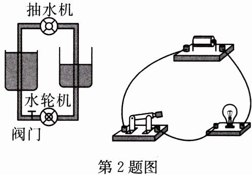 2. 在学习“电压”时,我们引入“水压”进行对比,如图所示,则下列说法错误的是(