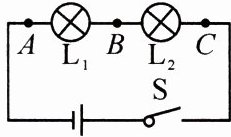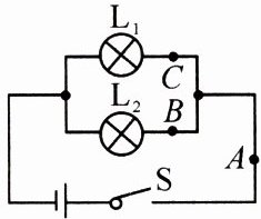 的电流。(2)该小组同学换用不同规格的小灯泡进行实验,用电流表多次测 $ A $、$ B $、$ C $ 三点的电流,记录实验数据如下表。