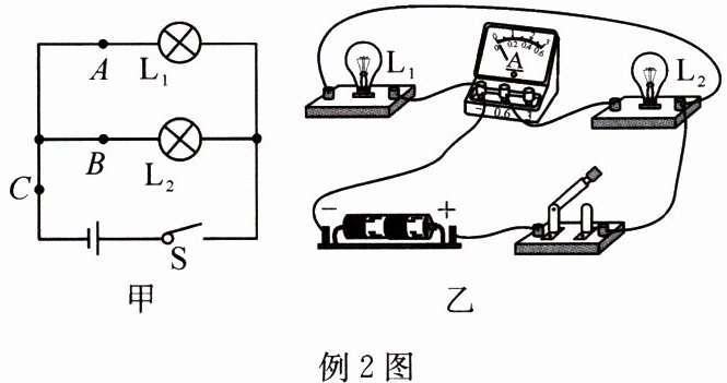 例 2 (2024·四川成都)在“探究并联电路中的电流特点”实验中,图甲是某小组同学设计的电路图。