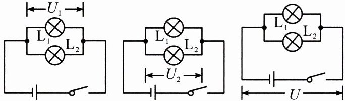 - 实验结论:并联电路中,电源两端电压与各支路用电器两端电压相等;