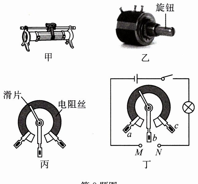 ,其中有一种是学生实验室中常用的滑动变阻器,如图甲所示;还有一种是如图乙所示的电位器,其内部结构如图丙所示,它们都是通过改变接入电路中电阻丝的长度