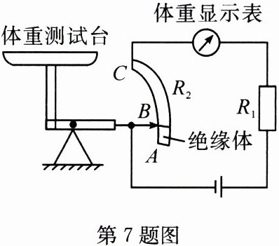 7. 如图所示是一个自动体重测试仪的工作原理图,体重显示表是由