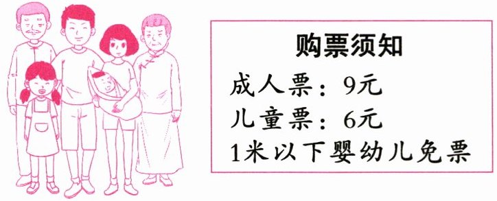 4. 周末,小美一家去公园游玩。他们买票一共需要多少钱?