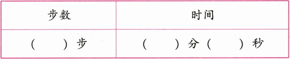 (1)数数走了多少步,看看用了多长时间,把结果记录在下表中。
