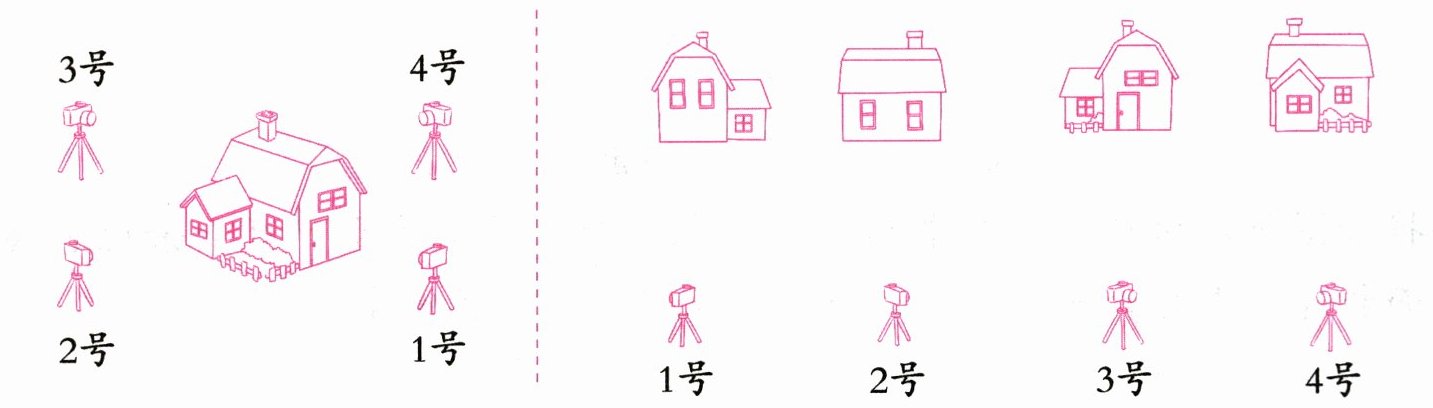 3. 下面右边的四张照片分别是几号照相机拍摄的?连一连。