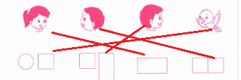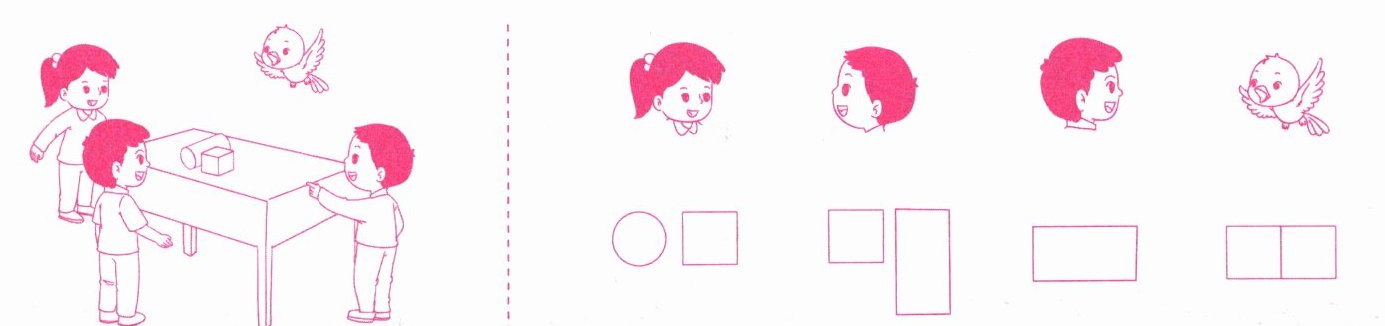 2. 小朋友们和小鸟分别看到的是什么图形?连一连。