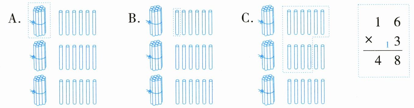 $\begin{array}{r}1\ 6 \\×\ \ \ 3 \\\hline4\ 8 \\\end{array}$