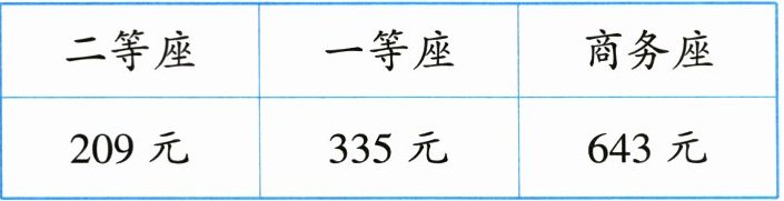 5. 愉快的旅行即将结束,爸爸和同事一行 $6$ 人从天津返回太原,他们将乘同一列高铁,车票价格如图所示。他们买票至少需要花多少钱?