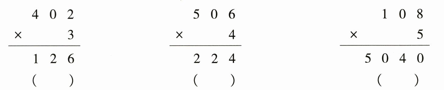 $\begin{array}{r}4\ 0\ 2 \\×\ \ \ \ \ 3 \\\hline1\ 2\ 6 \\\end{array}$