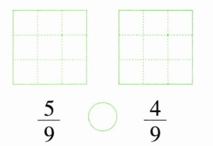$ \frac{5}{9} ◯ \frac{4}{9} $