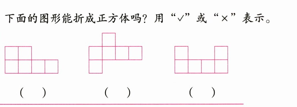 下面的图形能折成正方体吗?用“√”或“×”表示。