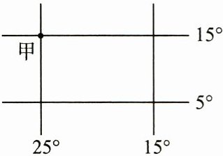 6. 一艘油轮在右图中甲点附近海域遭遇险情,甲点位于(