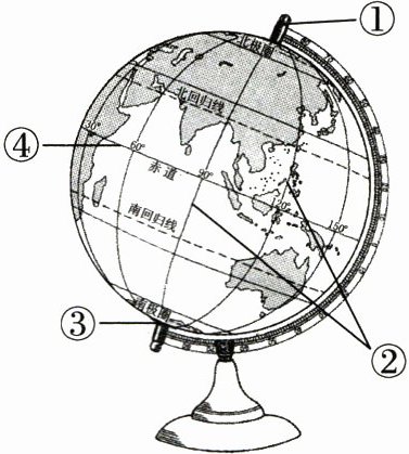 地球仪是地球的模型,也是学习地理的重要工具。读地球仪示意图,完成1~4题。