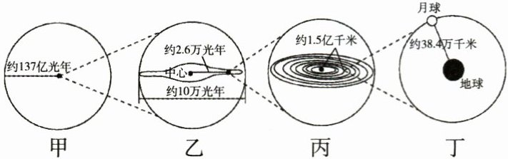 4. 不同级别天体系统示意图中,甲、乙、丙、丁代表的天体系统依次为(