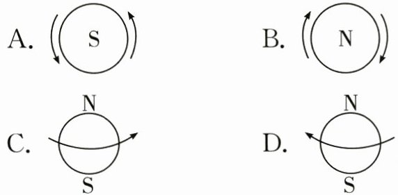 8. 宇航员在太空中看到地球的自转方向,正确的是(