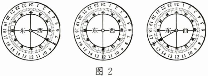 日晷是我国古代的计时器,其原理是利用晷针的影子在晷面上移动的位置来显示时刻变化。图1为北京某校同学观测的日晷照片,图2为当日观测到的晷针影子移动示意图。据此完成5~6题。