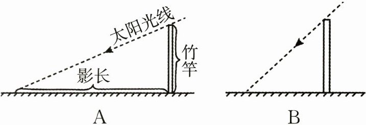 活动2:在夏至和冬至前后,测量并记录正午影子的方向和长度,绘制了A、B两图。结合活动2,完成第(2)题。