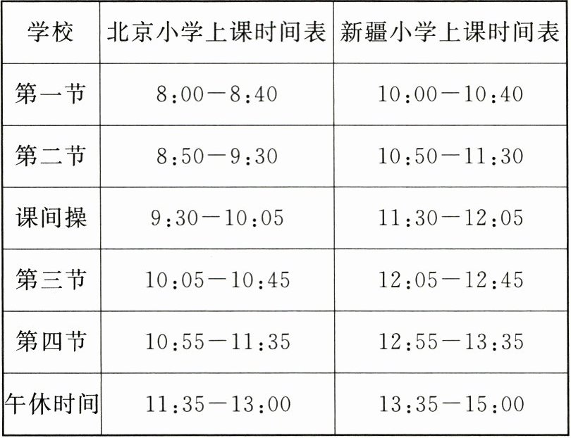 3. 北京的同学通常早上上学时间比乌鲁木齐的同学要早,这是因为(