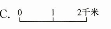 5. 下列比例尺中,图上1厘米表示的实地距离最长的是(