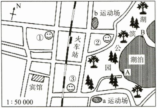 (2)同学们相约在湖泊西南方向的运动场附近会合,这个运动场指的是