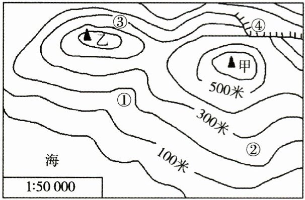 8. 读某地等高线示意图,判断下列说法正确的是(