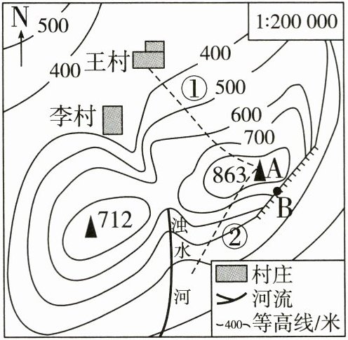 (4)根据李村、王村所处位置可知,最有可能遭受泥石流威胁的是