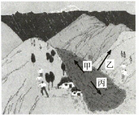 。当泥石流发生时,图中甲、乙、丙三种逃生方向,正确的是乙