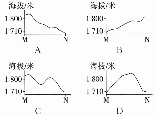 11. 下面是四位学生绘制的 MN 段地形剖面示意图,其中正确的是(