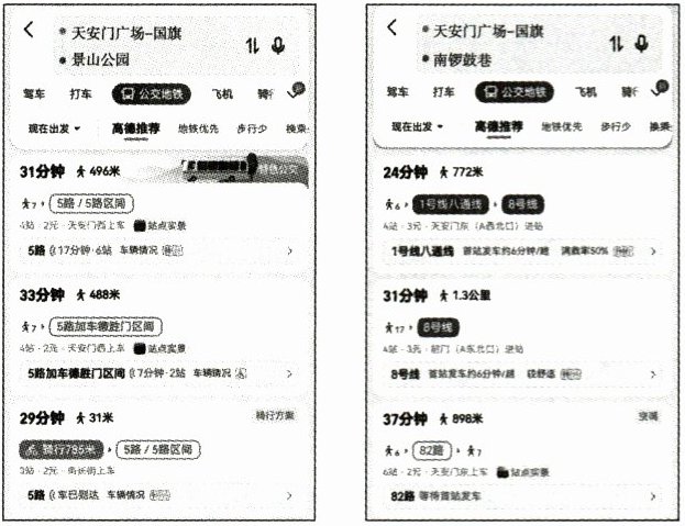 (2)若从升旗点乘坐公共交通工具前往景山公园,小王选择哪条出行方案最省时?