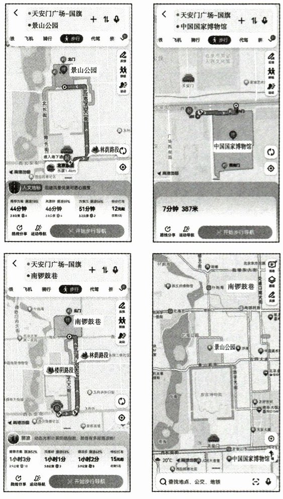 材料二 从天安门升旗点到景山公园与南锣鼓巷公共交通出行线路