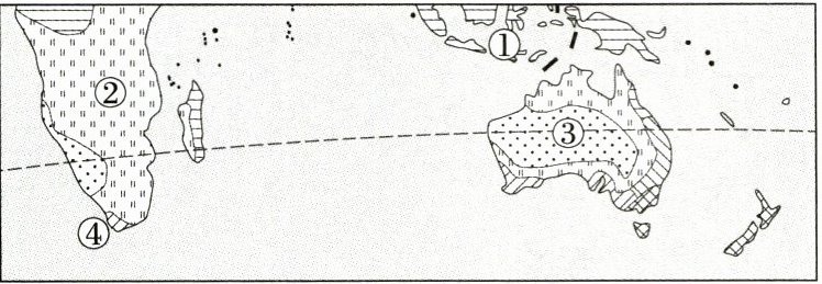 )A.①气候主要分布在赤道附近