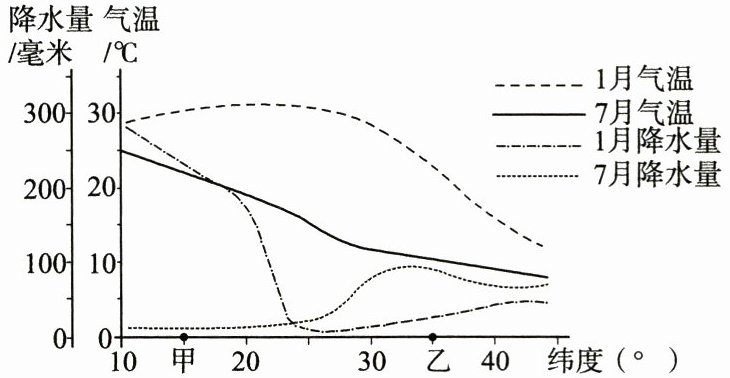 2. 据图判断甲、乙两地的气候类型分别为(
