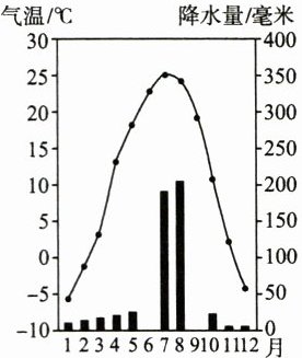 $^{\circ}C$。(3) 描述该地气候的基本特征。