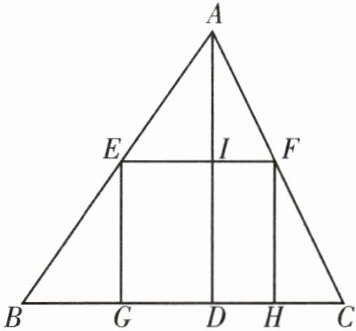 解:设正方形的边长为$x\,mm$,则$AI=AD-x=80-x$,$\because EFHG$是正方形,$\therefore EF// GH$,$\therefore \triangle AEF\backsim \triangle ABC$,$\therefore \frac{EF}{BC}=\frac{AI}{AD}$,即$\frac{x}{120}=\frac{80-x}{80}$,解得$x=48$,所以,这个正方形零件的边长是$48\,mm$.