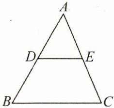2. 如图,在$\triangle ABC$中,$DE // BC$,$BC = 6\ cm$,且$S_{\triangle ADE}:S_{\triangle ABC} = 1:4$,那么$DE$的长为(