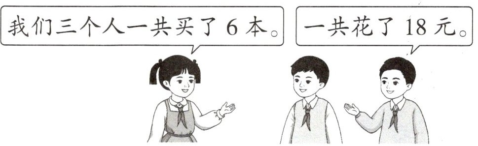 (1)6÷3=2(本) (2)平均每人花了多少元?18÷3=6(元)(答案不唯一)