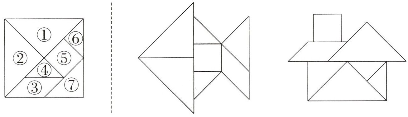 一、下面是用一些七巧板拼成的三幅图。