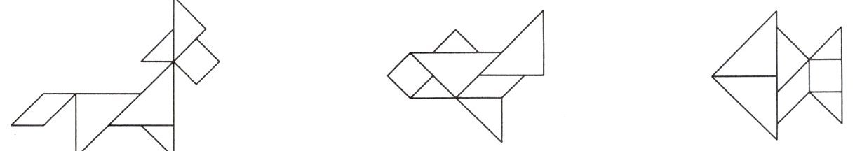 1. 下面每幅图都是由一副七巧板拼成的,三幅图一共用了多少块板?