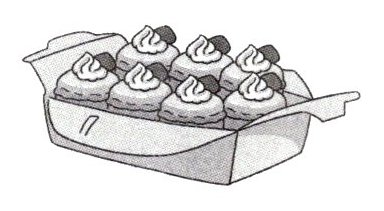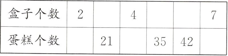 一、如下图,每个盒子里放7个蛋糕。(补全表格)