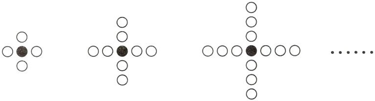 六、按下图这样摆下去,第 5 个图形一共要用多少枚棋子?