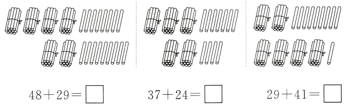 1. 计算 $ 28 + 57 $ 时,可以先算 $ 20 + 50 = $ (