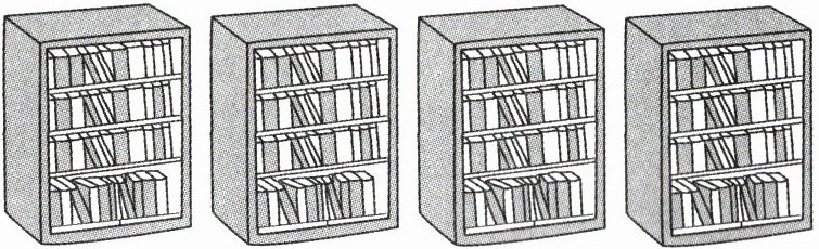 7. 下面的书架一共放了 256 本书,平均每个书架每层放了多少本?(6 分)