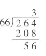 2. $$\begin{array}{r} 3 \\ 66\enclose{longdiv}{264} \\ 208 \\ \hline 56 \end{array}$$ 改正: